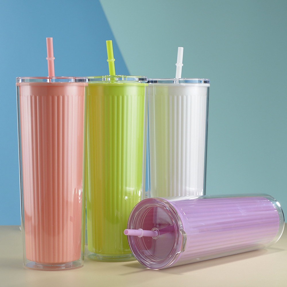 Copo térmico Fresh Color de 720 ml com duas camadas e canudo