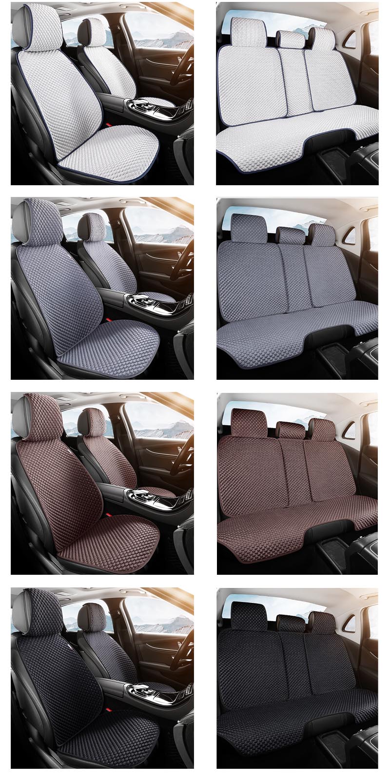 A almofada dividida do assento é adequada para diferentes estilos de assentos de carro, e o tecido fresco torna o verão menos abafado. Quatro cores disponíveis.